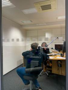 Die zwei Personen, die für den Podcast ausgesucht wurden, begaben sich in den Aufnahmeraum und wurden fotografiert. Lustigerweise wussten sie gar nicht, um was es eigentlich geht. Das Thema „Arbeiten und Ausgehen “ wurde ihnen erst hier mitgeteilt.