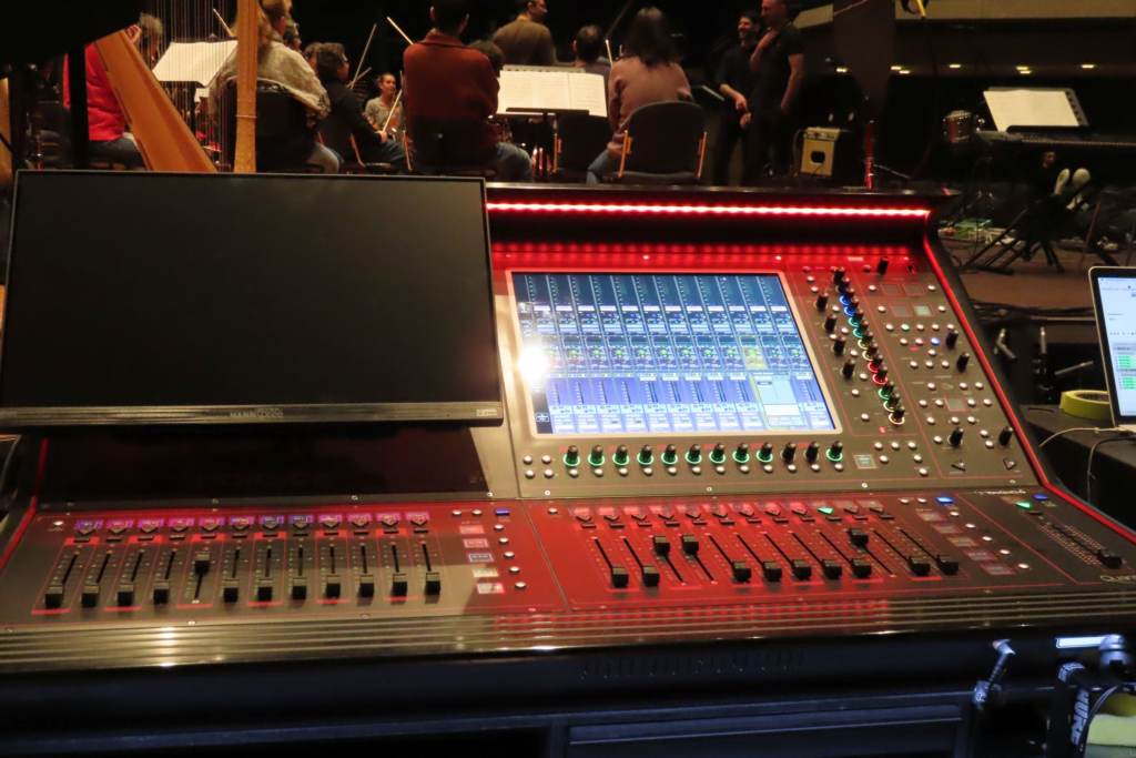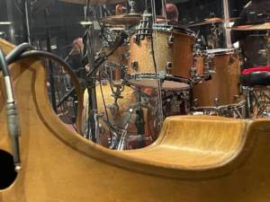 Musikinstrumente und Stühle warteten auf das Orchester.