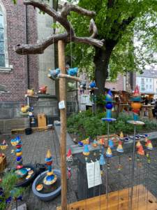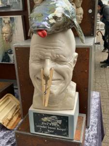 Da war es fast eine Pflicht für mich, den Krefelder Pottbäckermarkt zu besuchen. Allerdings wurde hier viel filigraner damit gearbeitet. Es wurden sensationelle Figuren für den Garten geschaffen, sowie schönstes Porzellan für die Kaffeetafel, manchmal bunt, manchmal weiß und schlicht im Design. Alles sah sehr hochwertig aus und auch mit Humor wurde nicht gespart (siehe Bilder). Die rund 80 Künstler konnten sich über viel Interesse und recht gutes Wetter freuen. Der Platz rund um die Dionysiuskirche ist aber auch sehr einladend und gemütlich. Sehr überrascht war ich, als ich hörte, dass der Markt schon zum 30. mal stattfand. Also auch hier ein kleines Jubiläum.