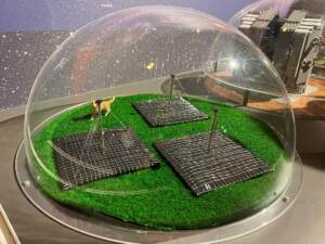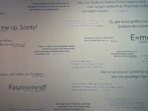 Wir befinden uns auf der MS Jenny (eigentlicher Name), die bis vor 20 Jahren ein klassisches Binnenfrachtschiff war. Dann wurde sie umgebaut und seitdem findet hier jedes Jahr eine neue Ausstellung statt. Von Mai bis Oktober fährt das Schiff durch ganz Deutschland, beginnt in Berlin und endet in Wien/Österreich. Die Ausstellung hat immer ein neues Thema. Dieses Jahr ist es „Unser Universum“, lassen wir uns faszinieren!
