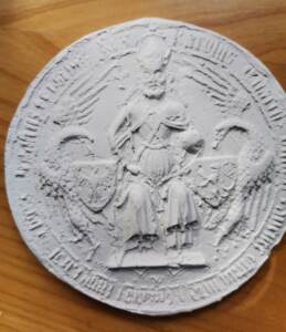 Für die Stadt Creyfeld, dies war damals die Schreibweise von Krefeld, war der 1. Oktober 1373 der „Geburtstag“ der Stadt, endlich durfte sich Krefeld als Stadt bezeichnen. Kaiser Karl IV. unterzeichnete die Urkunde und setzte sein kaiserliches Siegel daneben. Und wir konnten genau dieses historische Siegel aus Gips gießen.